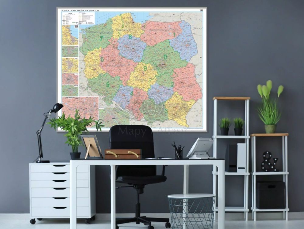 Polska 1:500 000. Mapa administracyjna. Kody pocztowe. Wersja do wpinania