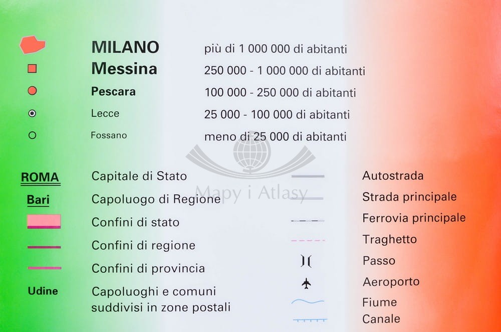 Włochy 1:1 000 000. Mapa administracyjna. Kody pocztowe. Wersja do wpinania. ST