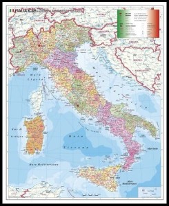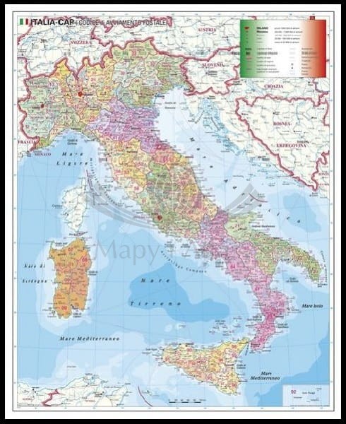 Włochy 1:1 000 000. Mapa administracyjna w ramie drewnianej. Kody pocztowe. ST