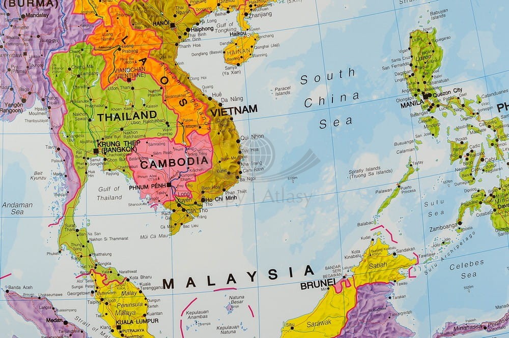 Polityczna mapa Azji w skali 1:11 000 000 wydawnictwa Maps International w wersji magnetycznej.
