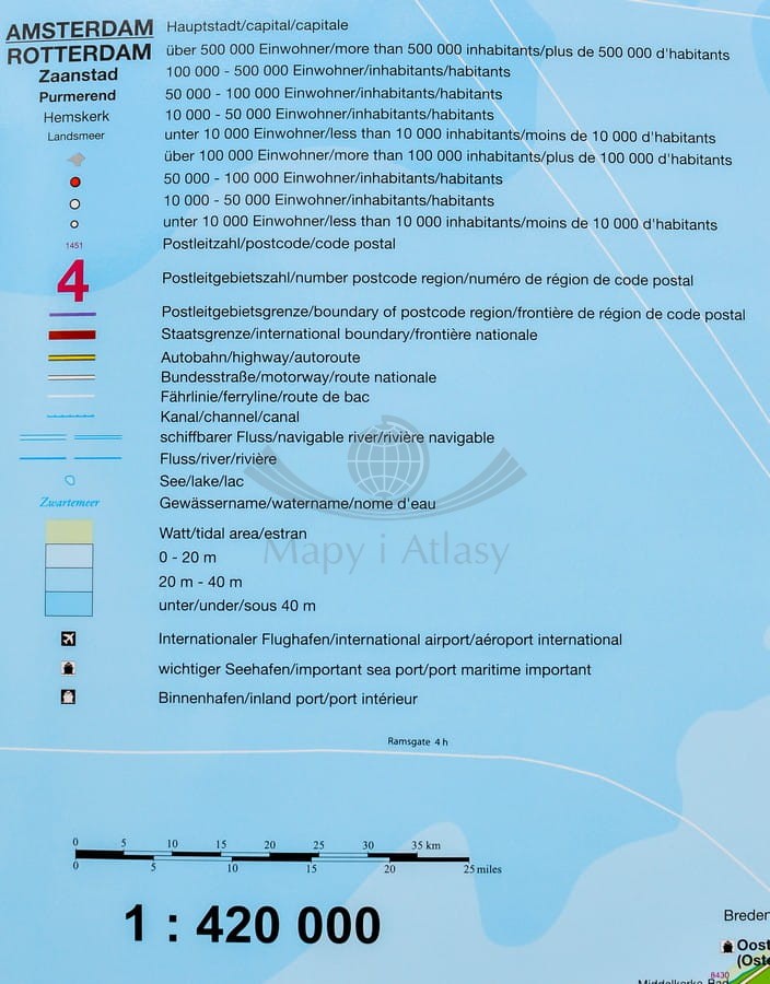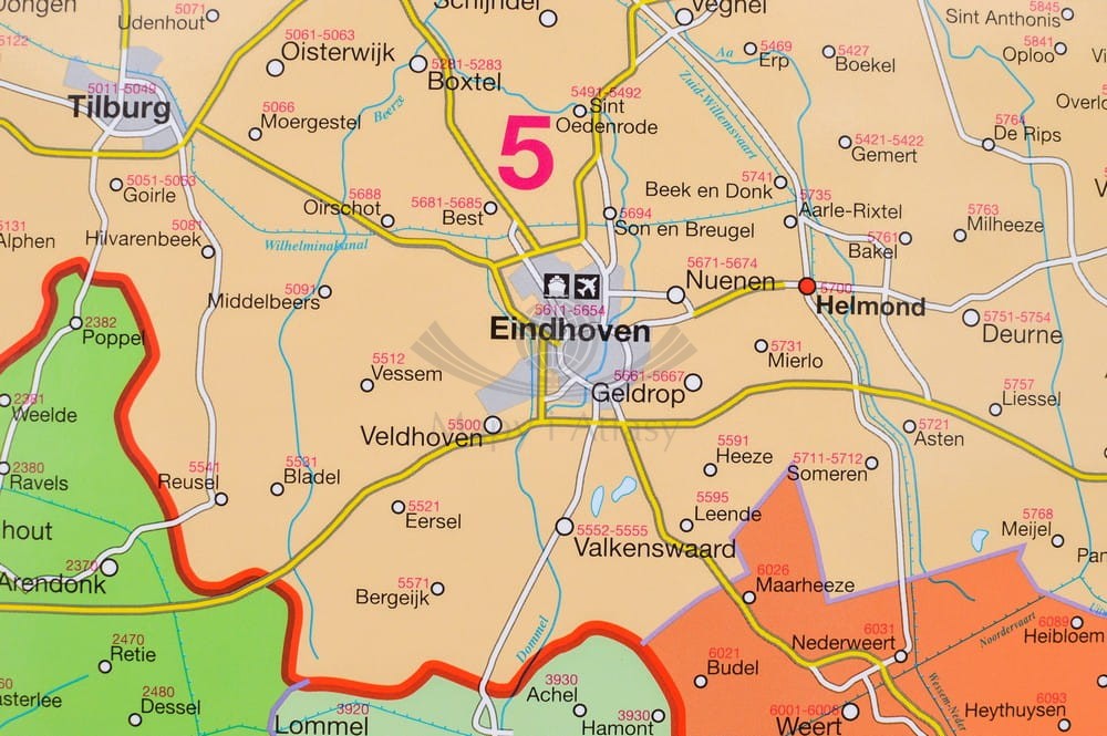 Kodowa mapa Beneluksu w skali 1:420 000 w wersji magnetycznej wydawnictwa Stiefel. Na mapie zaznaczono m.in.: miasta, miejscowości, kody pocztowe, granice państw, granice administracyjne...