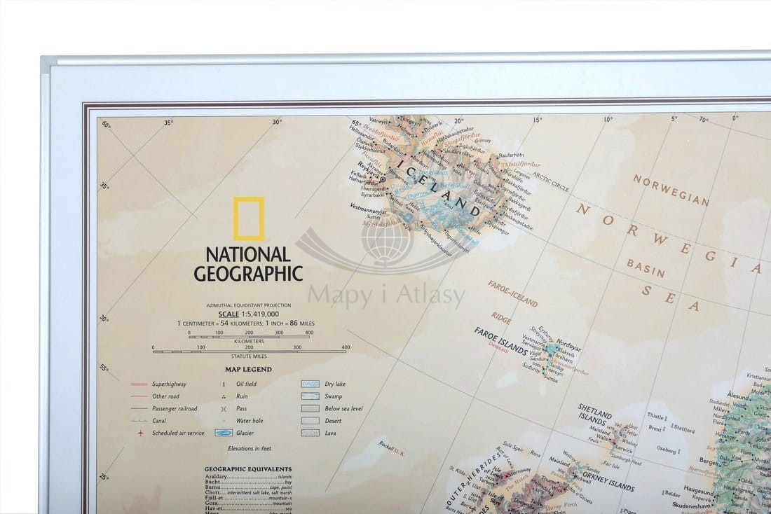 Mapa gotowa do zawieszenia na ścianie jako tablica. W komplecie zestaw montażowy wraz z instrukcją (instrukcja montażu mapy w ramie aluminiowej - patrz tutaj).