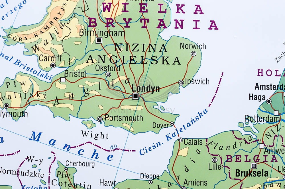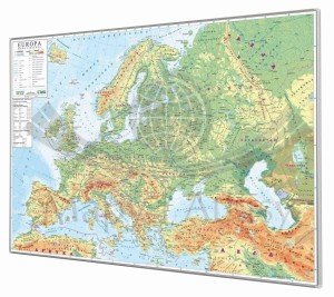 Mapa stanowi zarówno bardzo dobrą pomoc dydaktyczną podczas zajęć szkolnych czy nauki w domu, a także sprawdza się jako narzędzie pracy dla firm międzynarodowych oraz urozmaicenie wnętrza w mieszkaniu czy domu. Na mapie ściennej fizycznej znajdują się ważniejsze miasta europejskie, granice państw i jednostek administracyjnych, a oprawa graficzna pozwala zapoznać się z ukształtowaniem terenu kontynentu europejskiego.