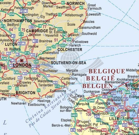 Dzięki odpowiednio dobranej kolorystyce bez trudu także dostrzeżemy granice państw oraz linie żeglarskie i promy samochodowe. Z lewej strony umieszczono flagi narodowe państw Europy.