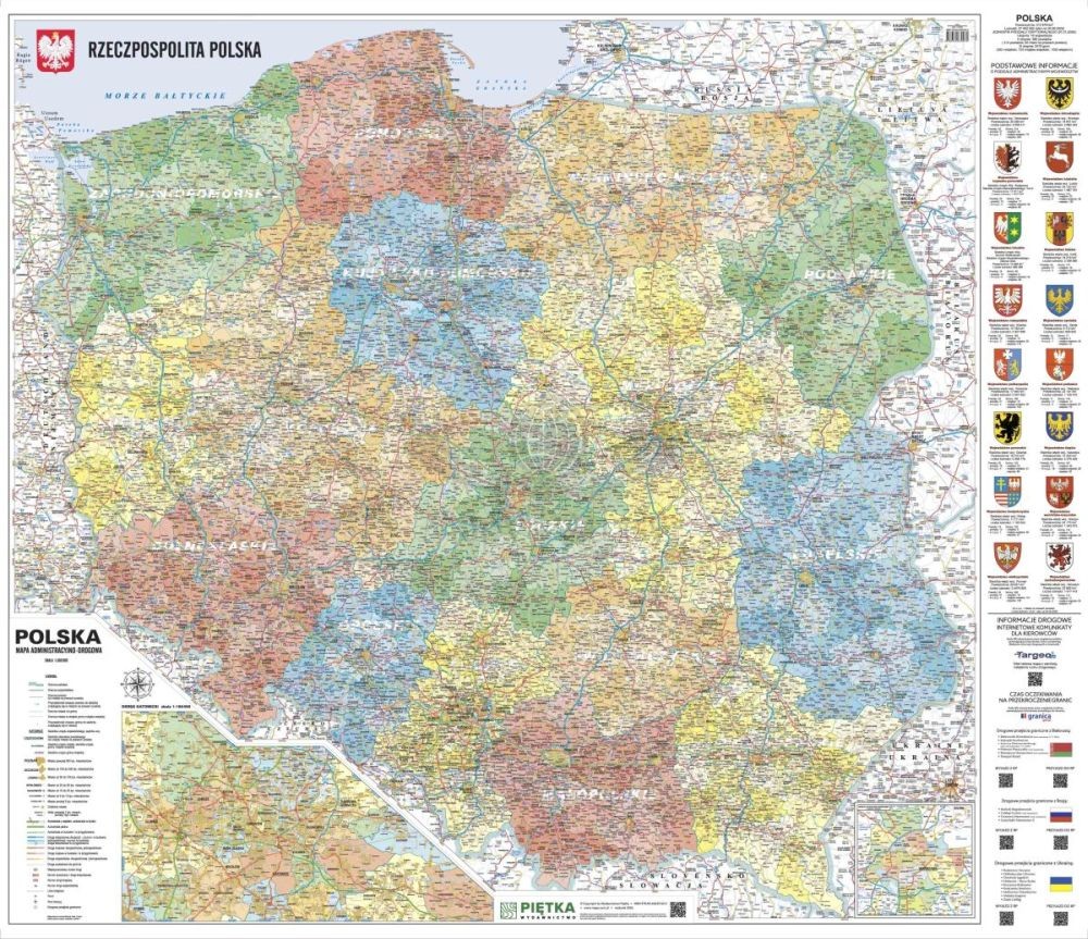 Mapa administracyjno-samochodowa Polski w skali 1:500 000 w wersji magnetycznej wydawnictwa Piętka.