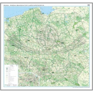 Mapa Polski w skali 1:500 000 z zaznaczonym podziałem organizacyjnym lasów państwowych w wersji magnetycznej wydawnictwa ArtGlob.