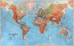 Mapa fizyczna świata w skali 1:30 000 000 wydawnictwa Maps International w wersji magnetycznej. Kolorami zaznaczono wzniesienie terenu ponad poziom morza, odcieniami koloru niebieskiego głębokość mórz i oceanów. Granice zaznaczone liniami.