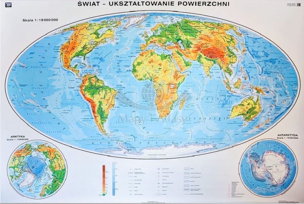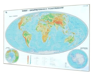 Mapa fizyczna (ogólnogeograficzna) świata w skali 1:19 000 000 wydawnictwa Nowa Era w wersji magnetycznej.