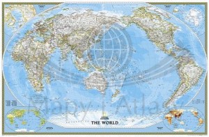 Mapa polityczna Świata Classic Pacific Centered w skali 1:36 384 000 w wersji magnetycznej, wydawnictwa National Geographic. Mapa zawiera m.in.: mini mapę bieguna północnego, mini mapę bieguna południowego, mini mapę rozmieszczenia ludności...
