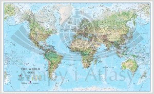 Mapa fizyczna (środowiskowa) świata w skali 1:30 000 000 w wersji magnetycznej wydawnictwa Maps International.