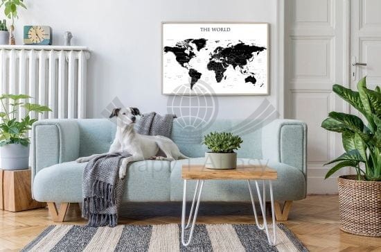 Mapa ścienna świata polityczna-konturowa - The World w wersji magnetycznej. Zawiera granice państw wraz z ich stolicami. Mapa w czarno-białej tonacji.