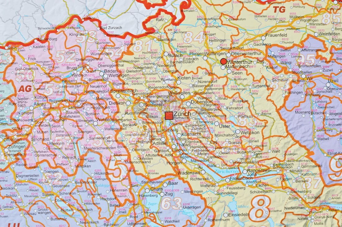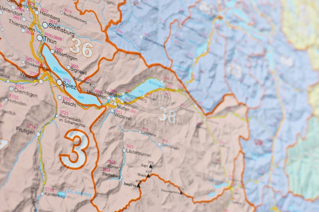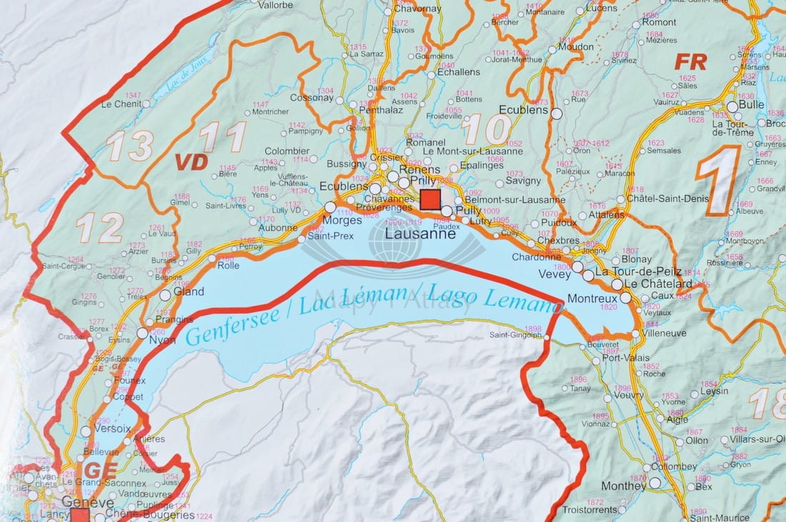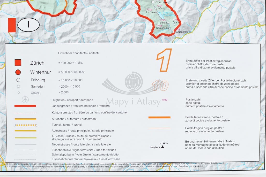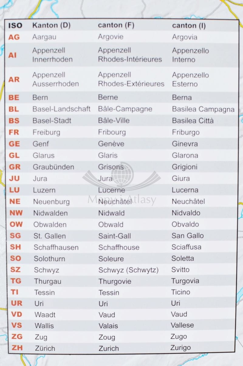 - mapę administracyjną Szwajcarii (podział na kantony) - w lewym dolnym rogu,