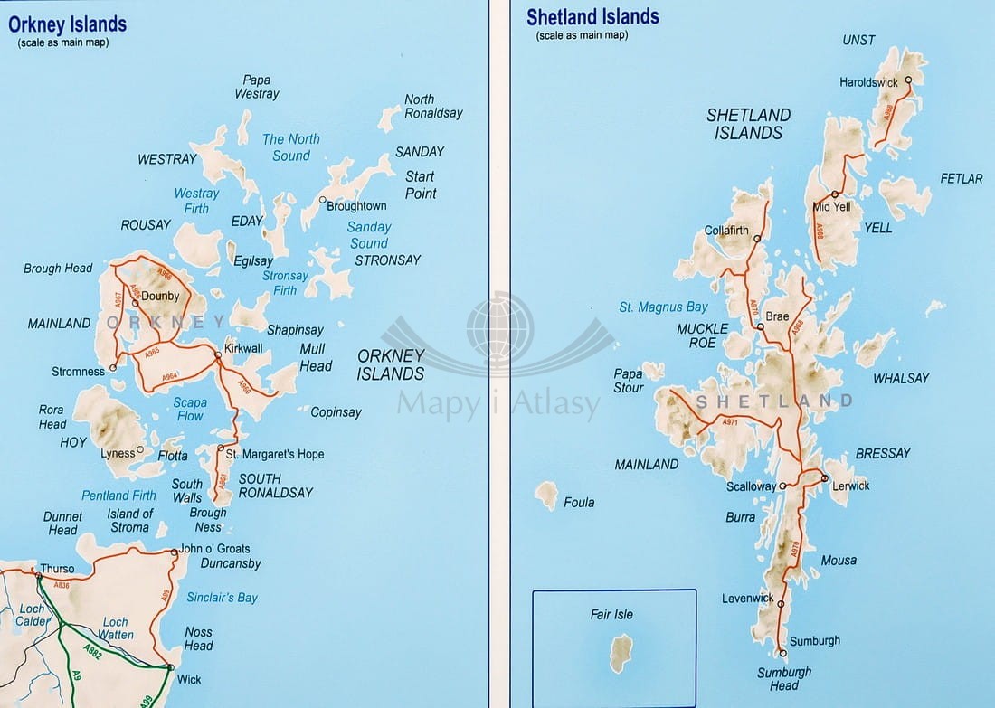 - Orkanów i Szetlandów (w skali 1:850 000),