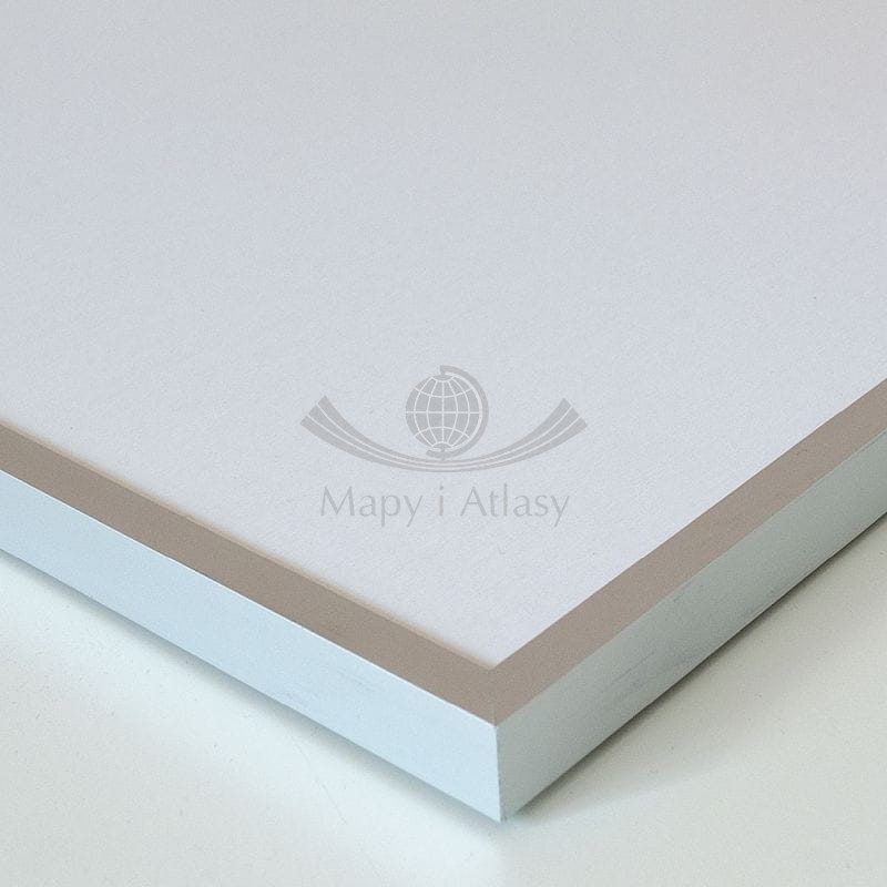 Mapa gotowa do zawieszenia na ścianie jako tablica. Na czas transportu mapa jest zabezpieczana narożnikami z pianki i opakowaniem kartonowym.