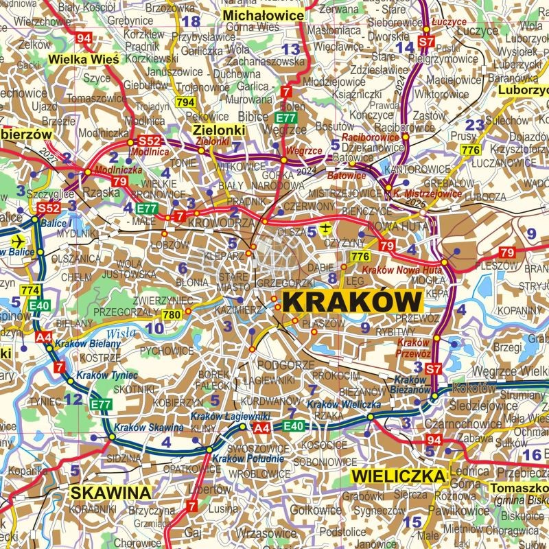 Okolice Krakowa 1:100 000. Mapa administracyjno-drogowa w ramie drewnianej