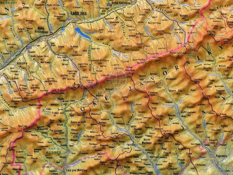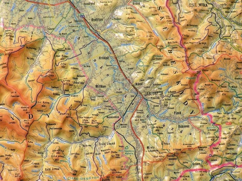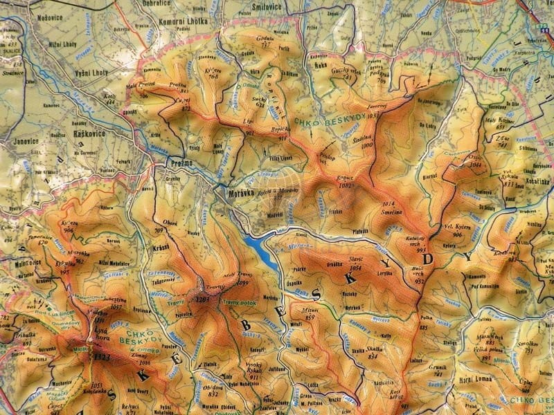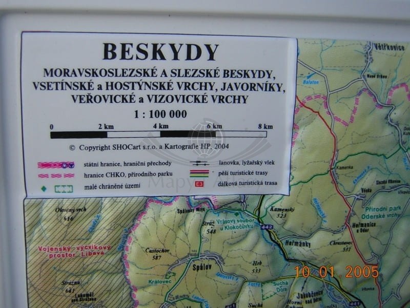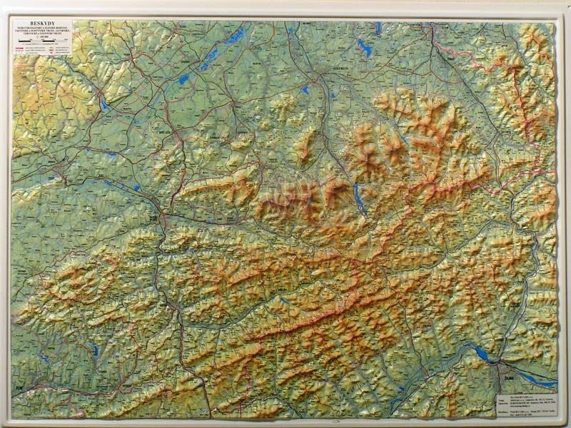 Plastyczna (trójwymiarowa) mapa Beskidu Śląsko-Morawskiego w skali 1:100 000 czeskiego wydawnictwa Kartografie HP.