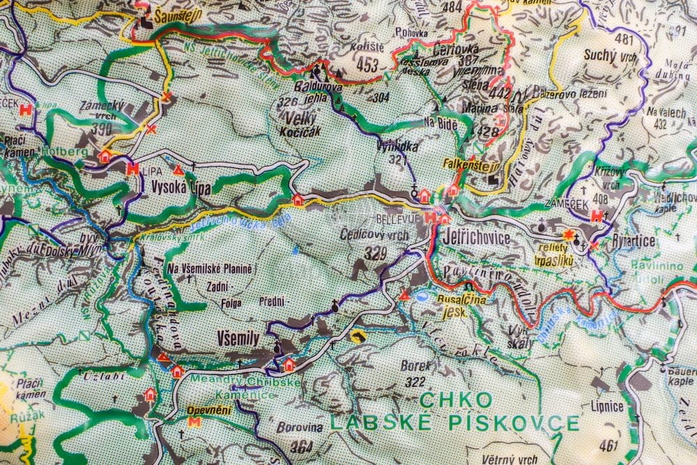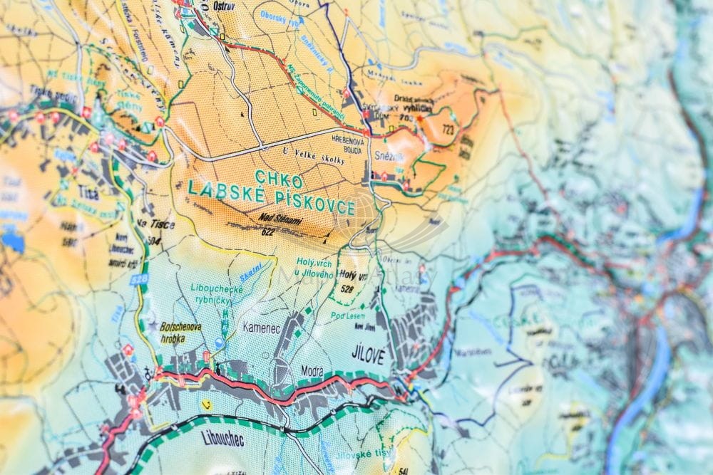 Plastyczna mapa Czeskiej i Saksońskiej Szwajcarii, Łabskich Piaskowców oraz zachodniej części Gór Łużyckich w skali 1:50 000 czeskiego wydawnictwa Kartografie HP.