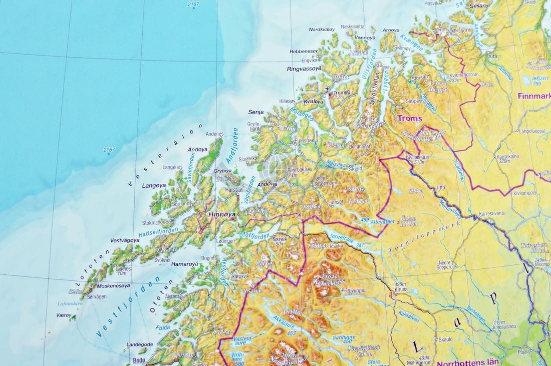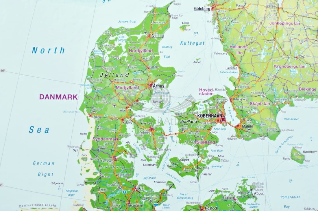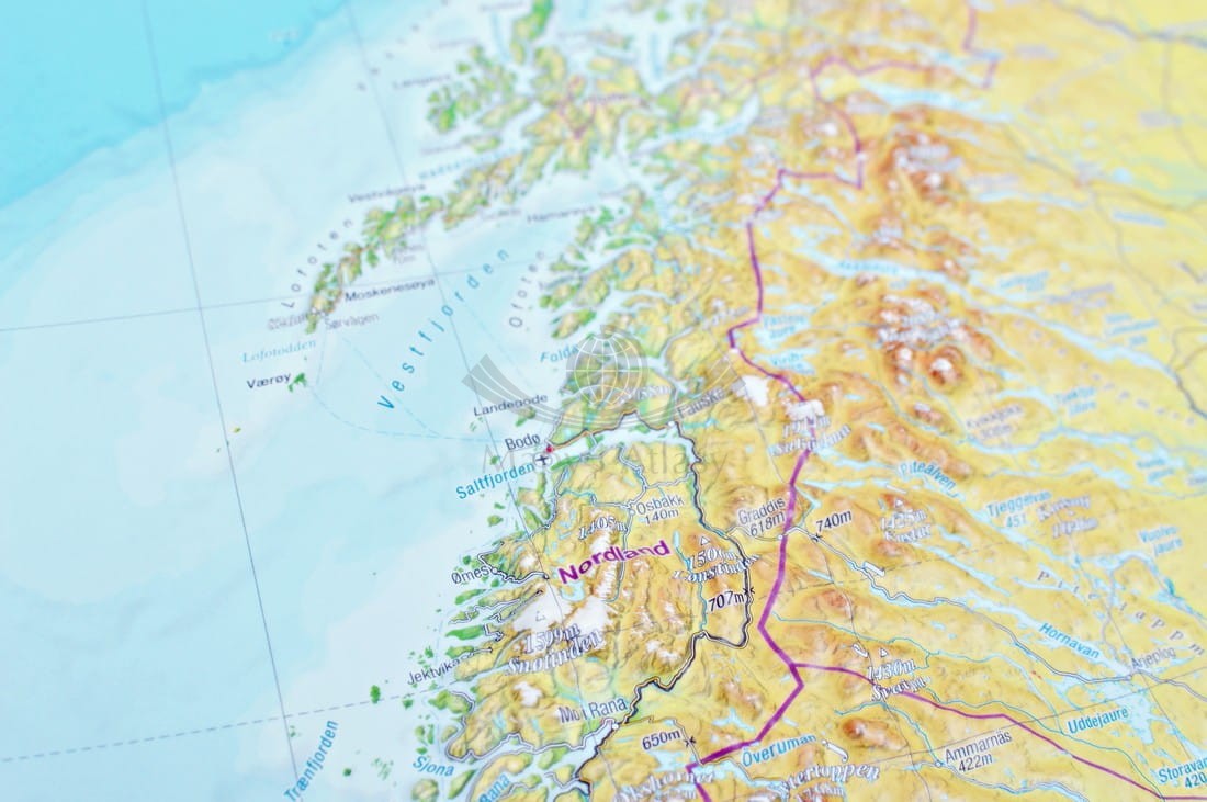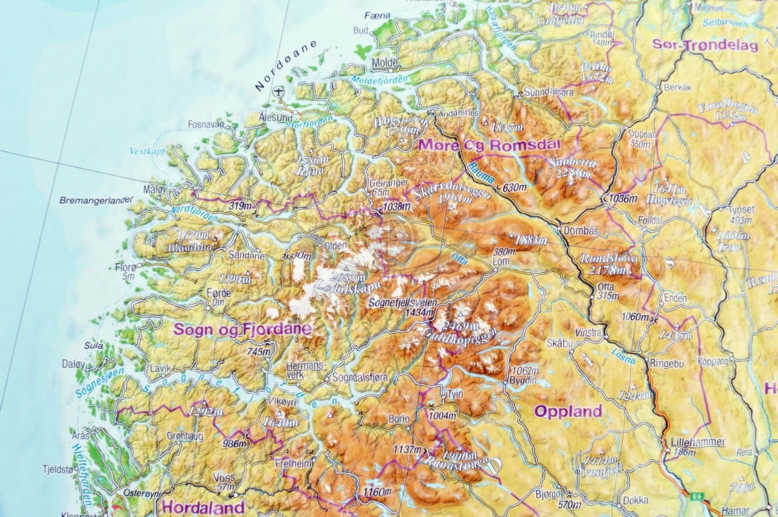 Plastyczna (3D) mapa Skandynawii w skali 1:2 900 000 wydawnictwa Georelief. Mapa obejmuje kraje: Szwecja, Norwegia, Finlandia, Litwa, Łotwa, Estonia, Dania.
