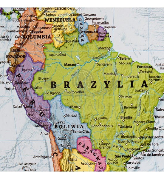 Świat 1:60 000 000. Mapa polityczna w ramie drewnianej