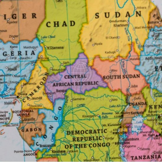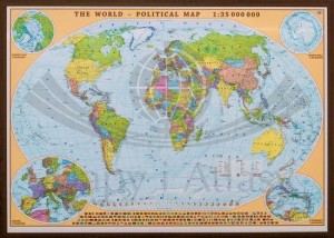 Polityczna mapa świata w skali 1:35 000 000 w języku angielskim w wersji do wpinania wydawnictwa EkoGraf. Mapa zawiera m.in.: podział polityczny świata, stolice państw, flagi wszystkich państw świata...
