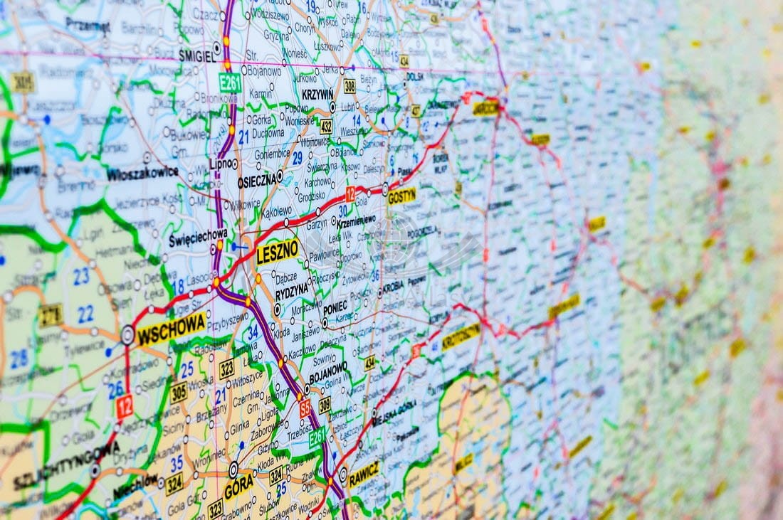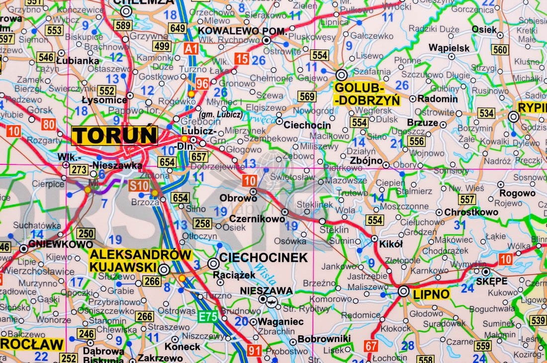 - aktualną sieć dróg i autostrad wraz z numeracją,
