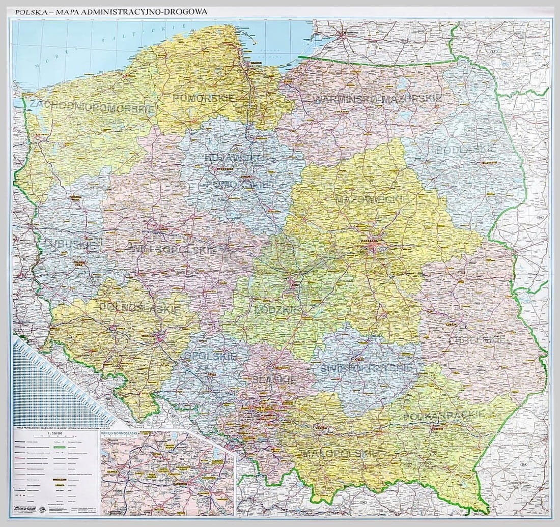 Mapa ścienna administracyjno-drogowa Polski w skali 1:350 000 wydawnictwa ArtGlob.