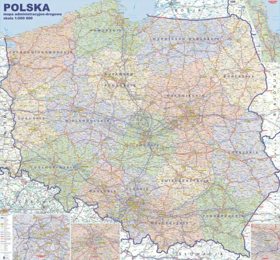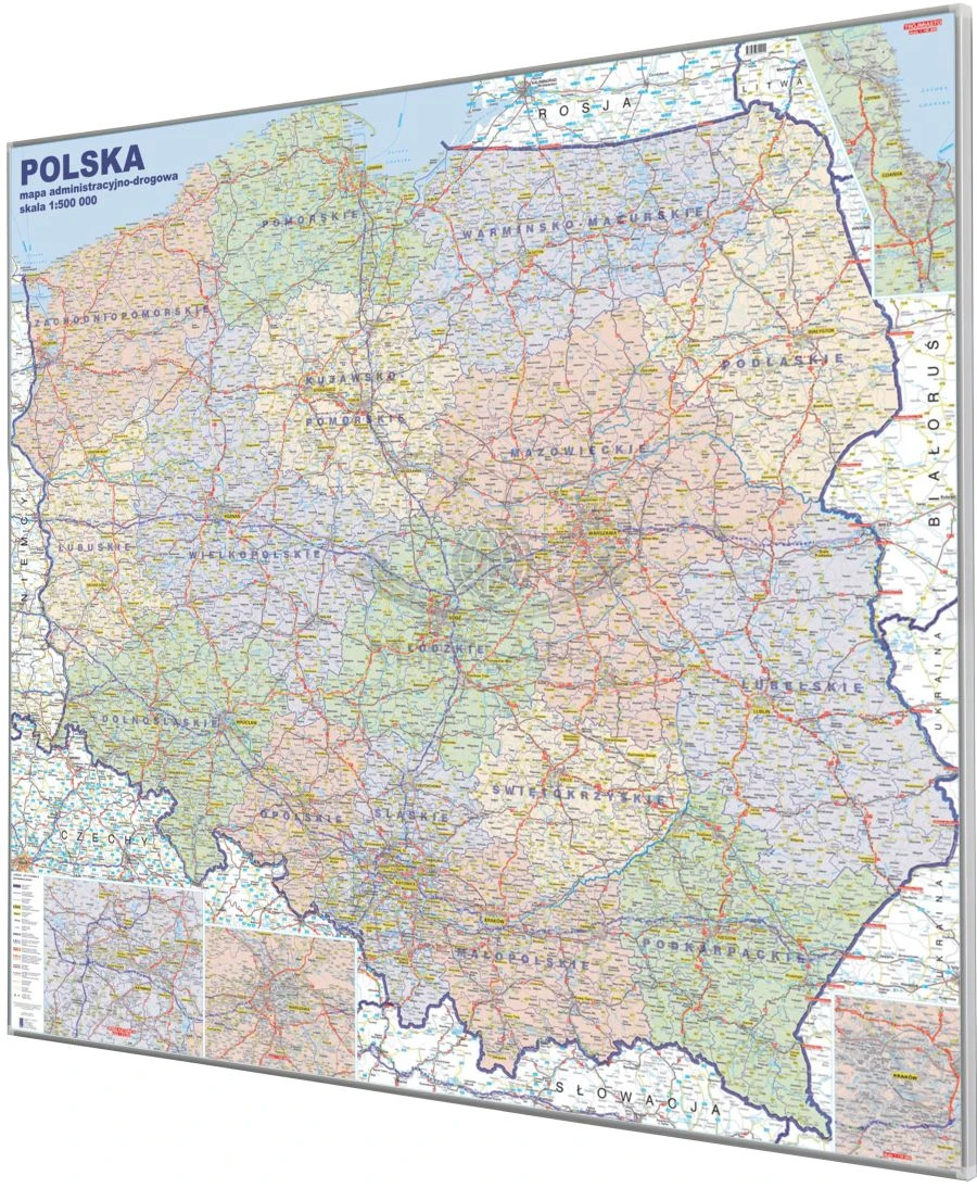 Mapa administracyjno-drogowa Polski w skali 1:500 000 w wersji do wpinania wydawnictwa Jokart.