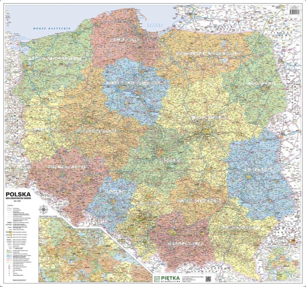 Mapa administracyjno-samochodowa Polski w skali 1:750 000 w wersji do wpinania wydawnictwa Piętka.