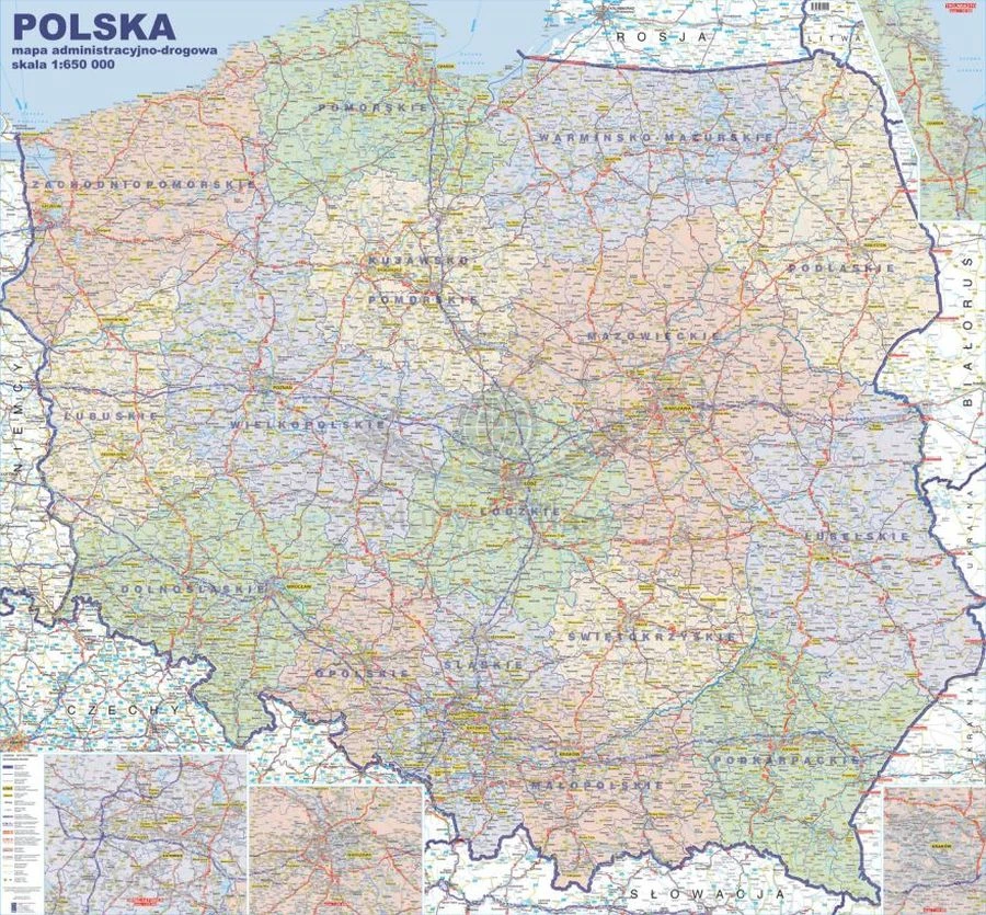 Mapa administracyjno-drogowa Polski w skali 1:650 000 w wersji do wpinania wydawnictwa Jokart.