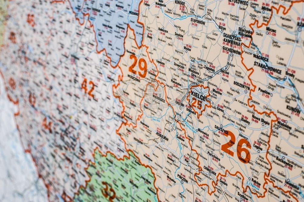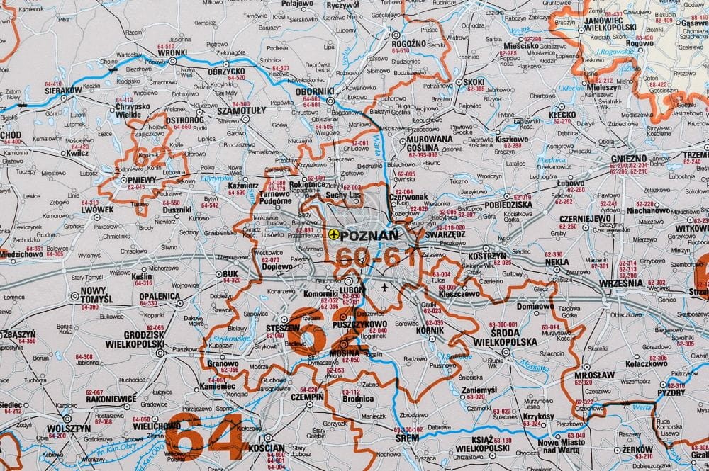 - granice okręgów i rejonów pocztowych,