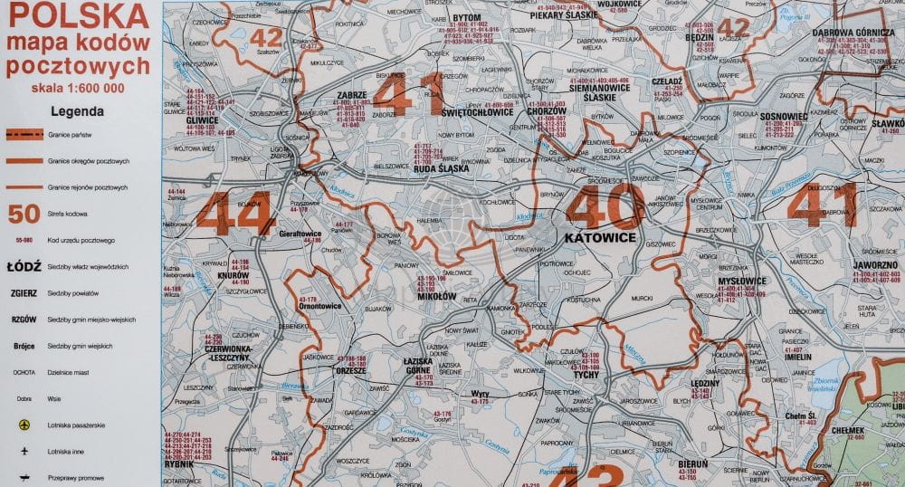 - kody urzędów pocztowych,