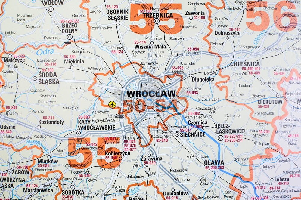- granice okręgów i rejonów pocztowych,