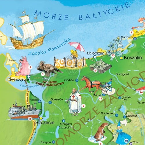 Geograficzna mapa ścienna Polski dla dzieci, pełniąca rolę edukacyjną oraz dekoracyjną. Zaznaczono na niej barwnie regiony i województwa wraz z ukształtowaniem terenu, jak też za pomocą kolorowych piktogramów najbardziej charakterystyczne budowle, zwierzęta, pomniki przyrody, wydarzenia. Dzięki temu mapa jest fascynującym źródłem wiedzy o historii i teraźniejszości naszego kraju. Przekazuje w ciekawy sposób informacje z zakresu geografii, przyrody i kultury. Pobudza wyobraźnię, zachęca do zdobywania wiedzy i inspiruje. Jest również świetnym pretekstem do spędzania w twórczy sposób wspólnego czasu rodziców z dziećmi.