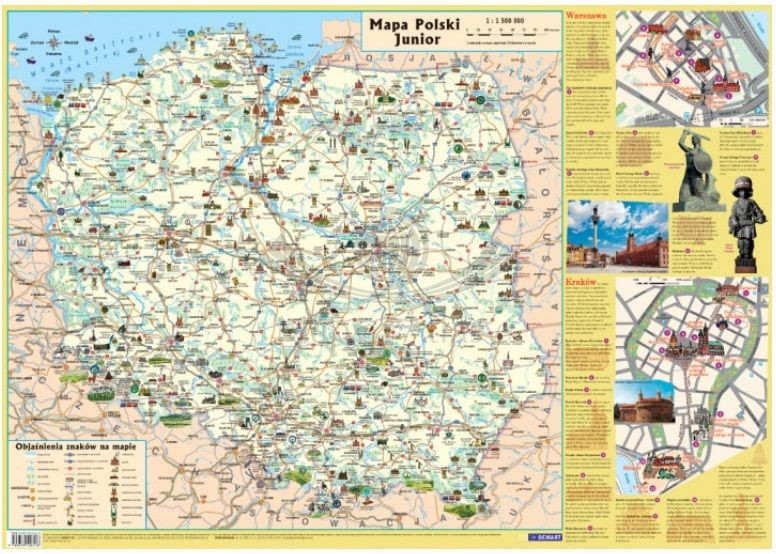 Prezentujemy Państwu Polskę - laminowaną mapę turystyczną, idealną do planowania podróży i odkrywania malowniczych zakątków naszego kraju. Mapa prezentuje informacje i dokładne dane geograficzne, aby zapewnić użytkownikom niezawodne wsparcie w ich przygodach.