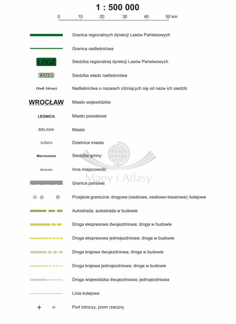 Polska 1:500 000. Podział organizacyjny lasów państwowych. Mapa. Wersja do wpinania