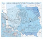 Mapa ścienna Polski z podziałem na strefy przemarzania gruntu. Mapa zalaminowana i oprawiona w rurki PCV, wyposażona w zawieszkę sznurkową.