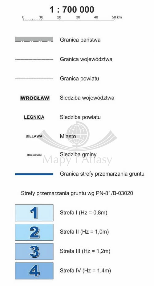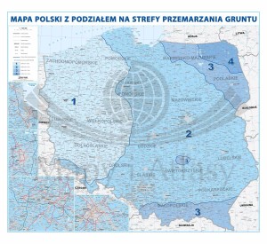 Polska 1:700 000. Mapa ścienna z podziałem na strefy przemarzania gruntu