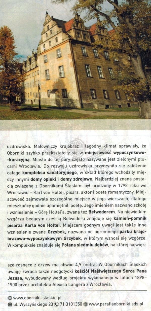 Na odwrocie zamieszczono informator krajoznawczy opisujący najciekawsze miejsca. Dodatkowo zawarto dane teleadresowe m.in. muzeów, obiektów sakralnych, atrakcji turystycznych.