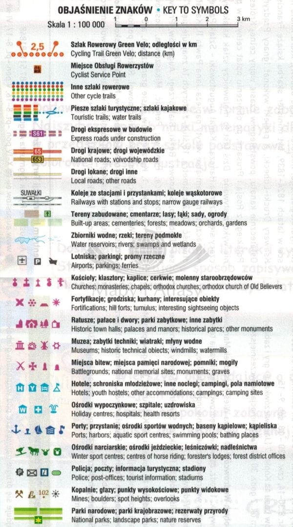 Wodoodporna i odporna na rozdarcie, składana mapa turystyczna Szlaku Rowerowego Green Velo w części północnej województwa podlaskiego w skali 1:100 000.