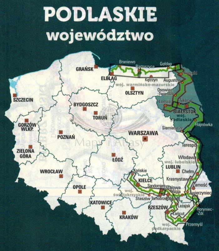 Województwo podlaskie, część północna. Wodoodporna mapa rowerowa. Nie tylko Green Velo. Euro Pilot