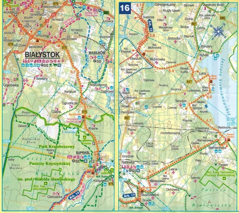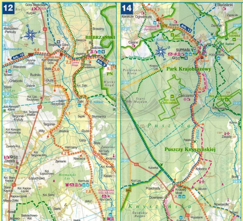 Województwo podlaskie, część południowa. Wodoodporna mapa rowerowa. Nie tylko Green Velo. Euro Pilot