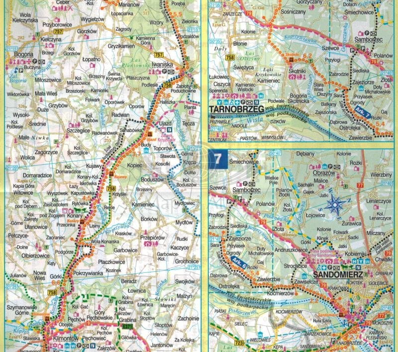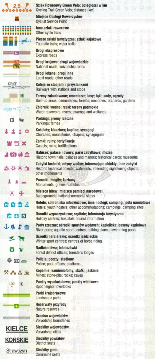 Wodoodporna i odporna na rozdarcie, składana mapa turystyczna Szlaku Rowerowego Green Velo województwa świętokrzyskiego w skali 1:100 000.