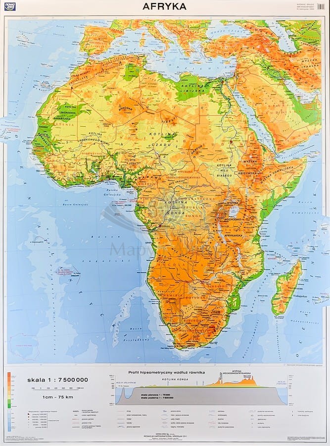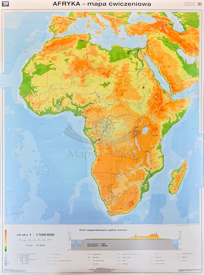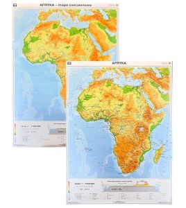 Dwustronna mapa ścienna Afryki w skali 1:7 500 000 wydawnictwa Nowa Era. Na jednej stronie zamieszczono mapę ogólnogeograficzną Afryki. Na drugiej stronie znajdują się wersje mapy i przekroju przeznaczone do ćwiczeń (bez nazewnictwa).