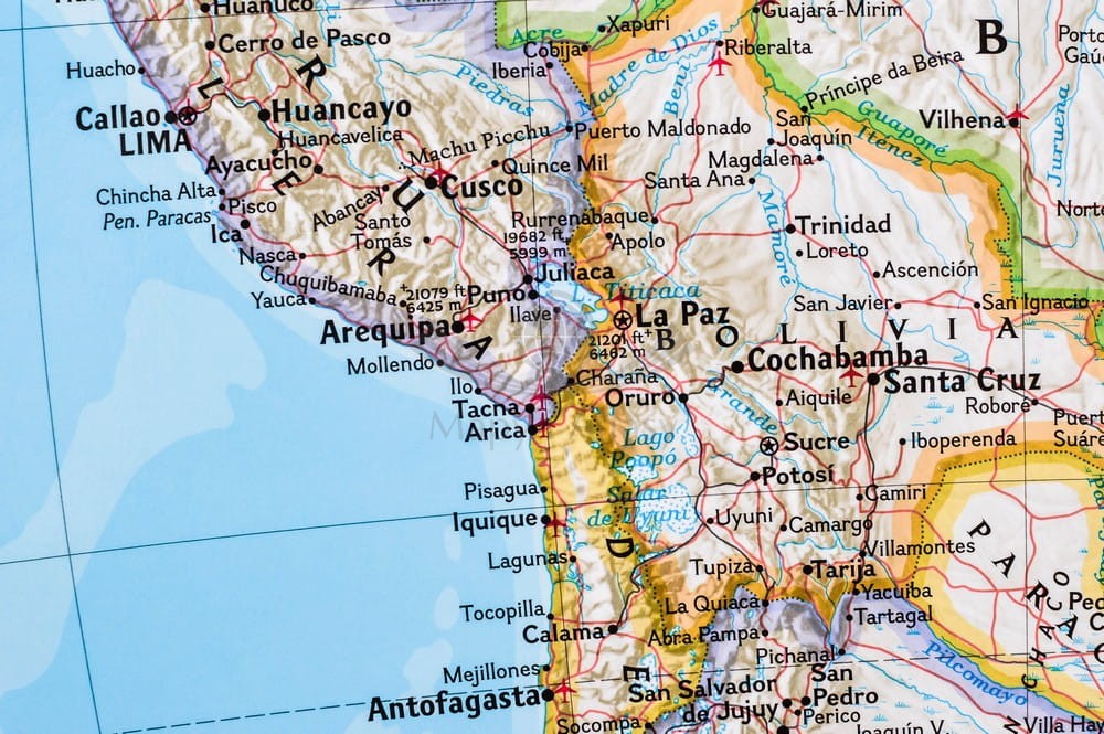 Ścienna mapa polityczna Ameryki Północnej i Południowej w skali 1:19 100 000 wydawnictwa National Geographic. Na mapie zaznaczono m.in.: granice państw, granice administracyjne, miasta, podstawową sieć dróg, pustynie, lodowce, bagna...