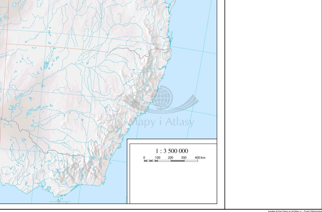 Australia 1:3 500 000. Mapa ścienna konturowa (do ćwiczeń). Drewniane półwałki