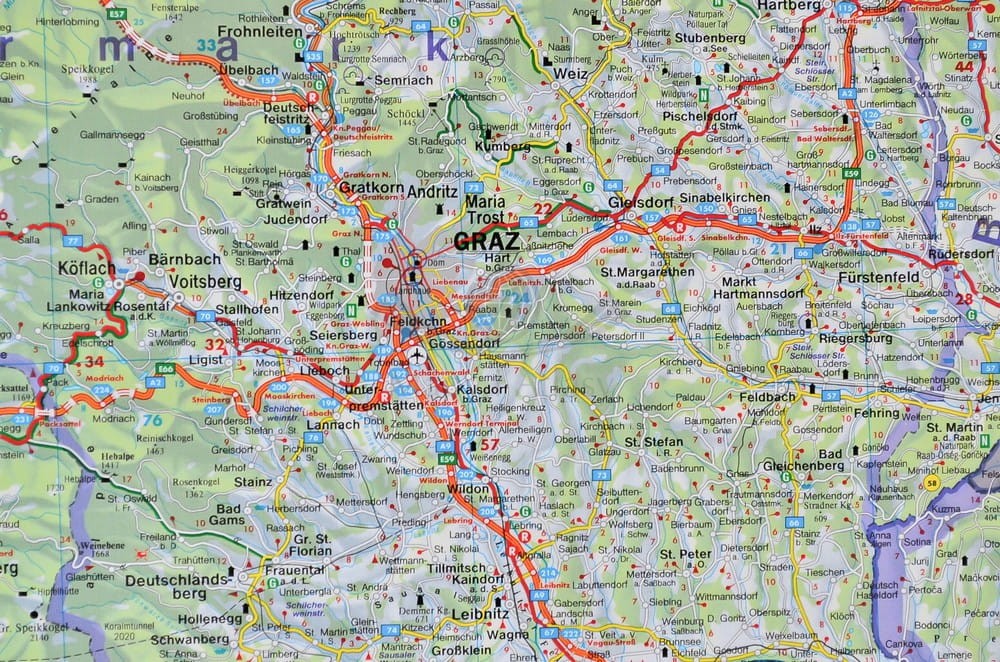Austria, Słowenia. Mapa ścienna drogowa. FB