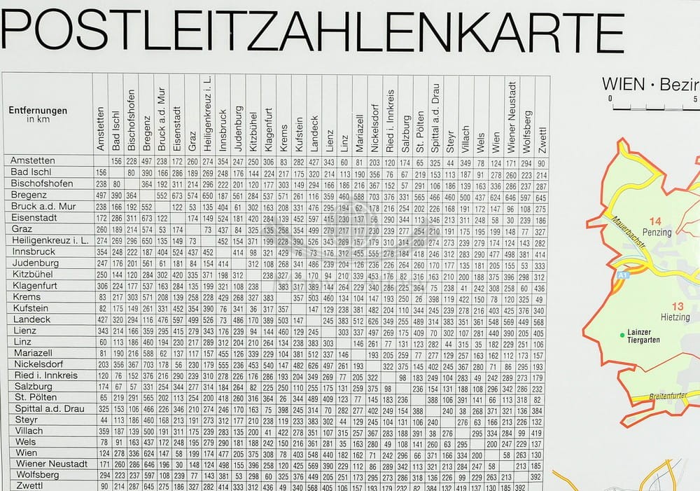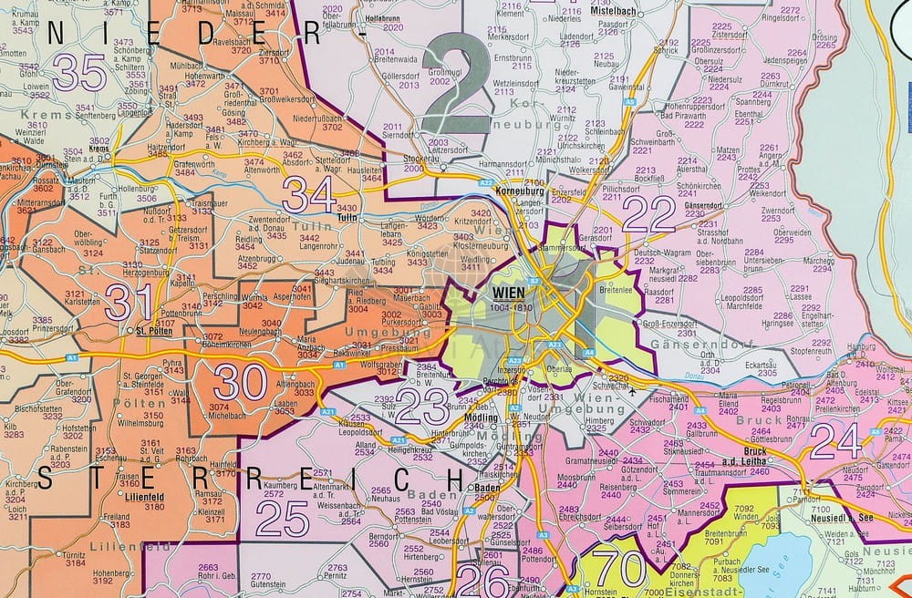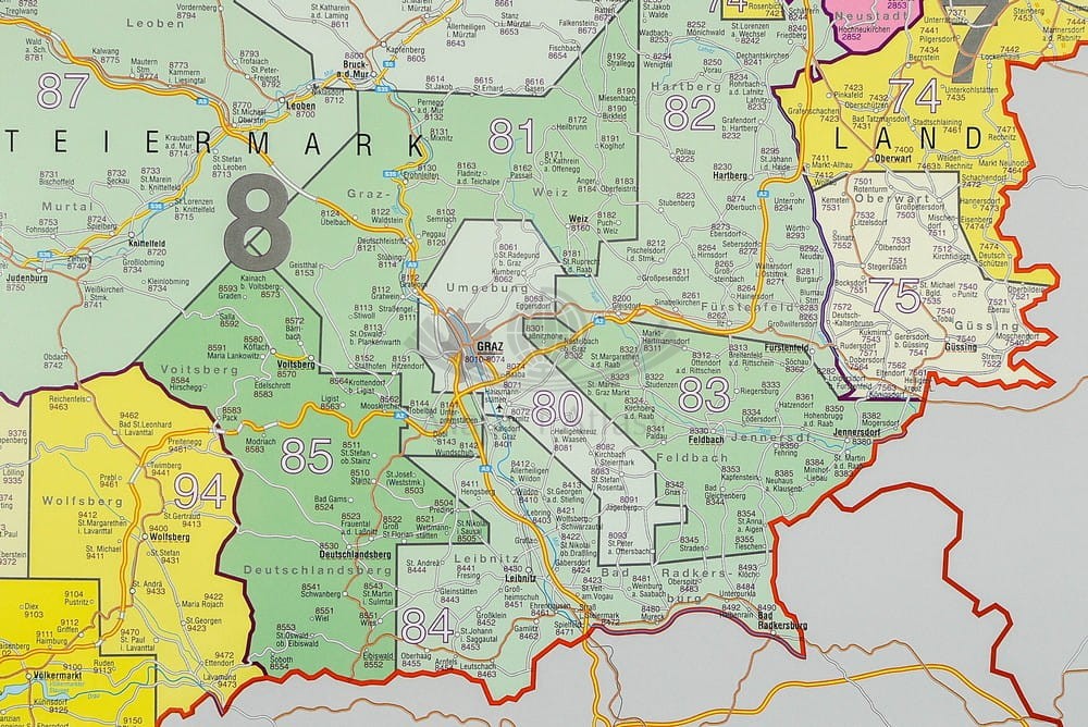 Austria 1:620 000. Mapa ścienna. Kody pocztowe
