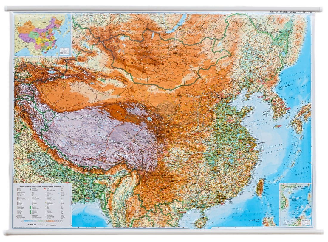 Fizyczno-drogowa mapa ścienna Chin w skali 1:4 750 000 wydawnictwa Gizi Map.