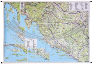 Fizyczno-drogowa mapa ścienna Chorwacji, Słowenii oraz Bośni i Hercegowiny w skali 1:500 000 wydawnictwa Freytag & Berndt. Na mapie zaznaczono min.: autostrady (również te w budowie), drogi, numery dróg, odległości w kilometrach...