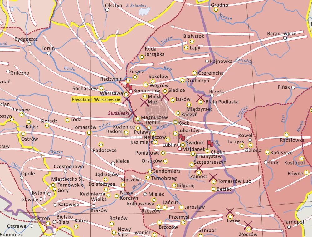 Działania armii czerwonej na ziemiach Polskich w latach 1944-1945. Mapa ścienna. Wersja STRONG